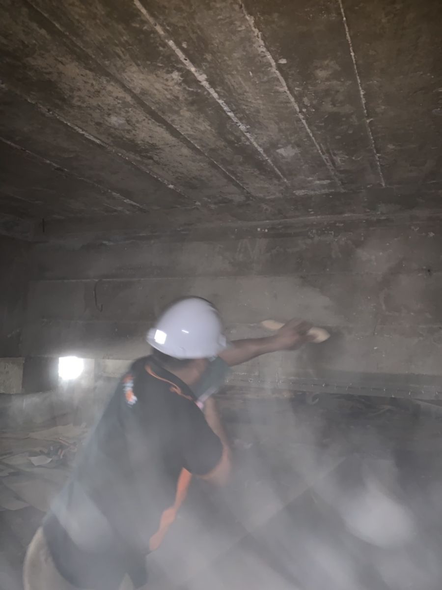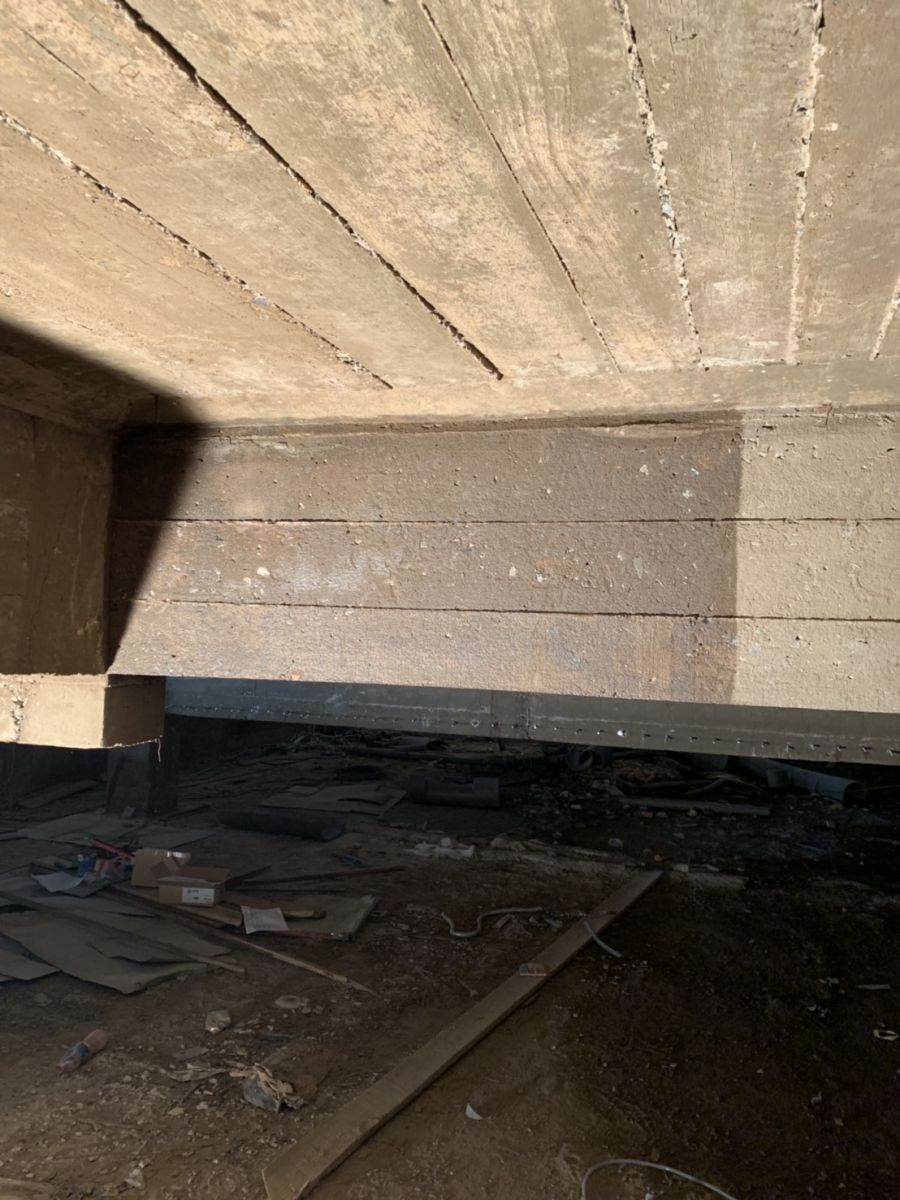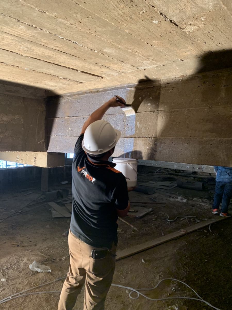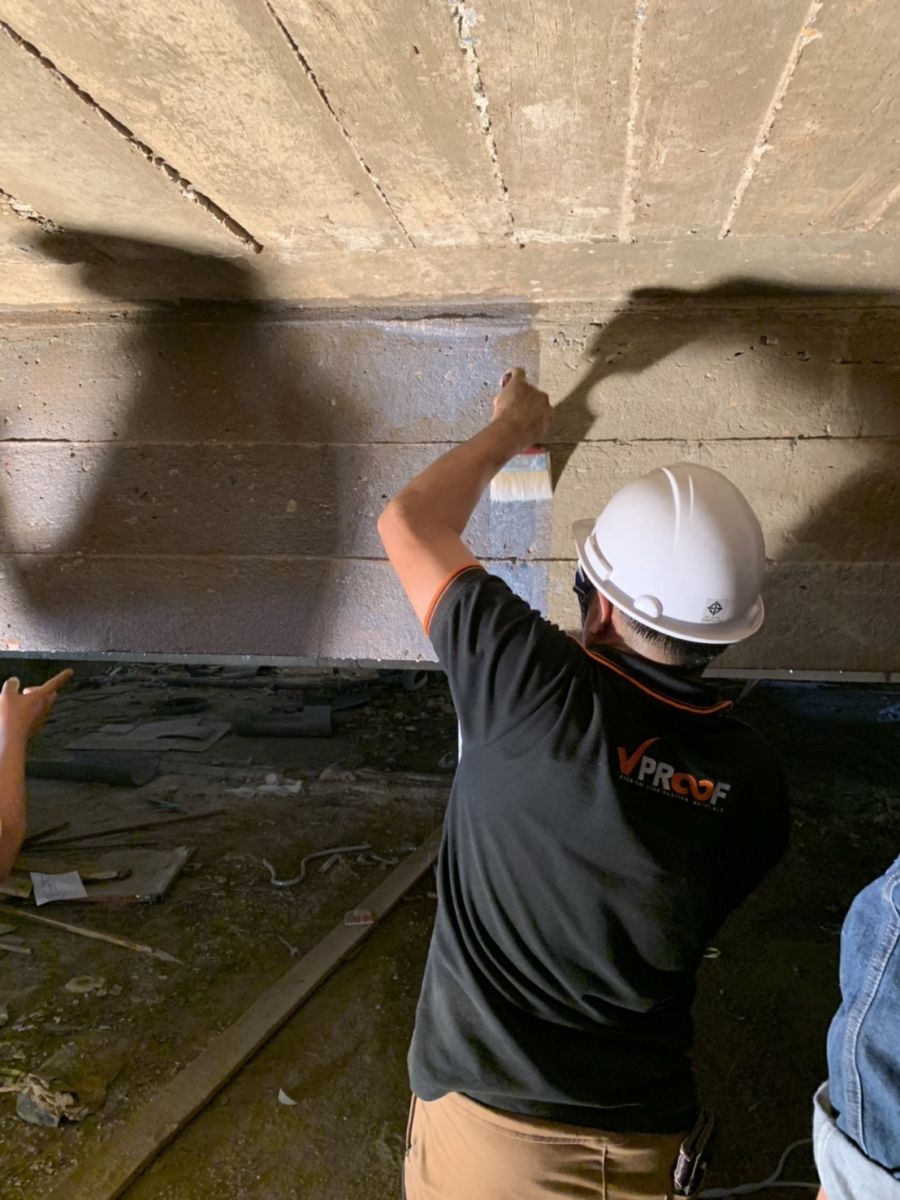 สาธิตการใช้ VPROOF 801 Liquid Hardener เป็นอาคารเก่าประมาณ 30ปี พื้นผิวคอนกรีตเสื่อมสภาพตรงคานด้านบน