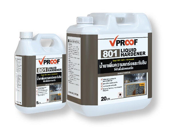 ต้องทำการขัดพื้นผิวคอนกรีตที่เสื่อมสภาพออกก่อน โดยใช้แปรงทองเหลือง ขัดจนเหลือสภาพคอนกรีตที่ดี จึงใช้ VPROOF 801 Liquid Hardener คุณสมบัติเป็นเนื้ออะคริลิกซิลิเกต เมื่อทำการทาลงบนพื้นคอนกรีตจะมีการซึมผ่านเข้าไปในเนื้อตามรูตามดและรอยแตกร้าว พร้อมเกิดปฏิกิริยาทำให้เนื้อคอนกรีตแน่น มีความแข็งแกร่งมากขึ้นและทำหน้าที่กันซึมได้ไปในตัว โดยผสม VPROOF 801 Liquid Hardener กับน้ำ ในอัตราส่วน 1:1คนให้เข้ากัน ทาลงบนพื้นผิวด้วยแปรงหรือลูกกลิ้ง ทิ้งไว้ให้แห้ง 1-2 ชั่วโมง ทาลงไว้ 2 ชั้น แค่นี้ก็สามารถปกป้องพื้นผิวคอนกรีตให้คงทนต่อไปได้นาน